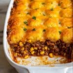 Cowboy Casserole Dinner is a hearty, comforting, and easy-to-make family meal featuring ground beef, beans, corn, creamy mushroom soup, cheddar cheese, and crispy tater tots baked to perfection. This all-in-one casserole is perfect for busy weeknights and guaranteed to satisfy a hungry crowd with its rich flavors and crispy topping.
