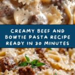 A rich and comforting dish featuring tender ground beef, creamy cheese sauce, and perfectly cooked bowtie pasta. This creamy beef and bowtie pasta recipe combines savory beef, melted cheddar and Parmesan, and a hint of paprika for a delicious family-friendly meal ready in just 30 minutes.