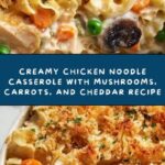 Creamy Chicken Noodle Casserole with Mushrooms, Carrots, and Cheddar Recipe