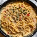 This Creamy Crockpot Chicken Spaghetti is a comforting, easy-to-make slow cooker recipe featuring tender chicken breasts cooked in a rich, cheesy sauce with diced tomatoes, cream cheese, and cheddar cheese. The uncooked spaghetti is added directly into the crockpot for a hassle-free, one-pot meal perfect for busy weeknights or cozy gatherings.