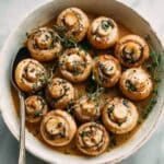 This Creamy Garlic Butter Tuscan Mushrooms recipe features tender sautéed mushrooms in a rich, garlicky cream sauce with sun-dried tomatoes and fresh spinach, finished with Parmesan cheese and fresh parsley for a flavorful and elegant side dish or light main.