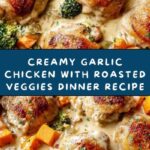 This Creamy Garlic Chicken & Vegetables recipe features tender chicken thighs or breasts cooked in a rich, garlicky cream sauce paired with roasted broccoli and butternut squash. It’s a comforting, balanced one-pan meal perfect for a cozy dinner, combining vibrant roasted vegetables with savory chicken in a buttery garlic sauce.
