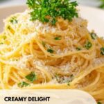 This creamy garlic Parmesan pasta is a luscious and comforting Italian-inspired dish that combines tender pasta with a rich sauce made from butter, garlic, creamy heavy cream, and freshly grated Parmesan cheese, finished with a sprinkle of fresh parsley for a burst of color and flavor. It’s a quick and easy meal perfect for weeknights or a cozy dinner.