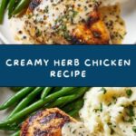 This Creamy Herb Chicken recipe features tender chicken cutlets cooked in a rich, flavorful sauce made with garlic, dry white wine, Dijon mustard, heavy cream, and a fresh poultry herb mix. Perfect for a quick weeknight dinner, it delivers comforting creamy goodness with aromatic herbs and a golden sear.