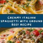This Creamy Italian Spaghetti with Ground Beef is a comforting and flavorful pasta dish featuring a rich tomato and beef sauce blended perfectly with a creamy cheese sauce. The combination of ground beef, aromatic herbs, and a smooth cheese blend makes it a satisfying meal perfect for family dinners or casual gatherings.