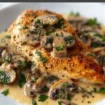 Creamy Mushroom Chicken is a rich and savory dish featuring tender seared chicken thighs simmered in a luscious sauce made with garlic, mushrooms, white wine, heavy cream, and Parmesan cheese. Infused with fresh herbs like rosemary, thyme, and parsley, this recipe delivers comforting flavors perfect for a hearty dinner served over pasta, rice, or mashed potatoes.