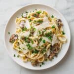 This creamy mushroom linguine is a comforting Italian main course featuring tender linguine pasta tossed in a rich and velvety mushroom cream sauce. Made with a blend of earthy cremini, shiitake, and button mushrooms sautéed with garlic and shallots, deglazed with white wine, and enriched with heavy cream and Parmesan cheese, it’s a perfect easy-to-make vegetarian dish bursting with savory flavors.