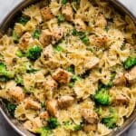 - Combine Ingredients: In a large bowl, mix the cooked pasta, shredded or diced chicken, steamed broccoli florets, 1 cup shredded mozzarella, and ½ cup grated Parmesan cheese. Pour the pesto cream sauce over this mixture and stir gently until everything is evenly coated with the creamy sauce.