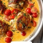 This Creamy Pesto Chicken with Roasted Tomatoes recipe offers a delightful blend of tender, seasoned chicken breasts smothered in a rich and flavorful pesto cream sauce, perfectly complemented by sweet, blistered roasted grape tomatoes. Ready in just 30 minutes, it’s a comforting and elegant dish ideal for a quick weeknight dinner or a special meal.