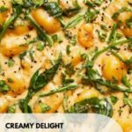 Gnocchi dishes often don’t freeze as well due to the creamy sauce and fresh spinach, which can become watery when thawed. If you want to freeze, consider freezing only the cooked gnocchi separately and preparing the sauce fresh ahead of time for the best texture.