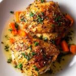 These Crispy Brown Sugar Mustard Chicken Thighs offer a perfect balance of sweet, tangy, and smoky flavors with a beautifully crisp skin. The combination of brown sugar and Dijon mustard creates a caramelized glaze that enhances the juicy, tender chicken cooked to perfection in a skillet and finished in the oven.