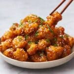 A delicious recipe for Crispy Chinese Honey Garlic Chicken featuring tender chicken thighs marinated and coated in a light, crispy batter, then fried to golden perfection and tossed in a sweet and savory honey garlic sauce. Garnished with sesame seeds, green onions, and optional crispy vermicelli noodles, this dish delivers authentic Chinese flavors with a delightful crunch.