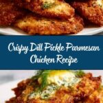 This Crispy Dill Pickle Parmesan Chicken recipe features tender chicken breasts marinated in dill pickle juice for a tangy twist, then coated in a flavorful mixture of seasoned flour, eggs, Parmesan cheese, and breadcrumbs before being pan-fried to golden, crispy perfection. Ideal for a satisfying dinner, this dish balances zesty, cheesy, and crunchy elements.