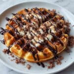 This Crispy Homemade Funnel Cake recipe delivers a classic fairground treat made right in your kitchen. Light, airy, and golden fried to perfection, these funnel cakes are topped with a dusting of powdered sugar and a rich, warm chocolate drizzle for an indulgent finish. Perfect for a fun dessert or a special snack, this recipe uses simple ingredients and straightforward frying techniques to recreate the iconic carnival flavor and texture.
