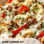 This Crock Pot Cheesesteak Tortellini is a comforting and hearty meal combining tender ground beef, sautéed bell peppers and onions, cheesy tortellini, and a rich creamy sauce. Perfect for a busy day, it uses simple ingredients and slow cooker convenience to infuse the flavors over hours, finishing with melted provolone or mozzarella cheese for a deliciously gooey finish.