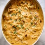 - Shred the chicken: Before serving, use two forks to break the chicken breasts into bite-sized pieces within the slow cooker, allowing them to soak up the gravy.