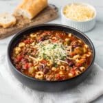 A comforting and hearty Italian-American soup made in the slow cooker, combining ground beef or Italian sausage, beans, tomatoes, vegetables, and pasta for a rich and flavorful Pasta Fagioli stew perfect for cozy meals.