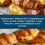 These Croissant Breakfast Sandwiches are a delicious and indulgent morning treat featuring flaky croissants spread with a sweet and tangy Dijon honey blend, layered with cheese, deli ham, crispy bacon, and fluffy scrambled eggs. Perfect for a hearty breakfast or brunch, they combine rich flavors and textures for a satisfying start to your day.
