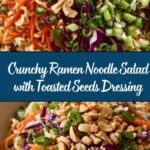 If you have leftovers, store them in an airtight container in the refrigerator. Keep in mind the crushed ramen noodles will gradually absorb moisture and may lose some of their crunch after about a day, so it’s best to enjoy this salad fresh or within 24 hours.