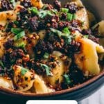 If you’d like to freeze leftovers, separate the noodles and lamb mixture to maintain texture. Freeze each in separate containers or freezer bags. Frozen portions will last up to 2 months. Thaw overnight in the fridge before reheating.