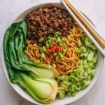 - Assemble the Dish: Divide cooked noodles and greens among serving bowls. Top with the cooked pork mixture, then pour over the Dan Dan sauce. Garnish with chopped roasted peanuts and chopped green onions. Add extra chili oil if you prefer more heat.