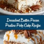 This Decadent Butter Pecan Praline Poke Cake is a luscious dessert featuring a moist butter pecan cake infused with a rich, homemade praline sauce. The sauce seeps into the cake through carefully poked holes, creating bursts of sweet, buttery pecan flavor in every bite. Topped with fluffy whipped topping and crunchy toasted pecans, this poke cake combines textures and tastes for an irresistible treat perfect for gatherings or special occasions.