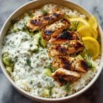 Dump-and-Bake Chicken Tzatziki Rice is a delicious and easy Greek-inspired casserole combining tender chicken, fluffy rice, and a creamy homemade tzatziki sauce. The dish is baked together, allowing the flavors to meld beautifully in one pan for a simple yet flavorful meal.