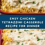 This Easy Chicken Tetrazzini recipe is a creamy, comforting pasta casserole featuring tender chicken, a rich sour cream and cream of chicken soup sauce, and a cheesy topping baked to golden perfection. Perfect for a family dinner, it combines simple ingredients with classic flavors for a hearty meal.