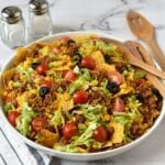 This Easy Doritos Taco Salad combines seasoned ground beef, crunchy Doritos chips, fresh vegetables, and a zesty dressing for a quick and satisfying meal. Perfect for potlucks, game days, or a tasty weeknight dinner, this salad offers a delightful mix of textures and flavors that’s sure to please the whole family.