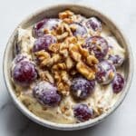 This Easy Grape Salad features a creamy blend of cream cheese, sour cream, and vanilla, combined with sweet red seedless grapes and topped with a crunchy, caramelized walnut or pecan brown sugar topping. It’s a refreshing, chilled dessert or side dish that is simple to prepare and perfect for gatherings or summertime meals.