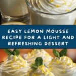 This Easy Lemon Mousse is a light, airy dessert that combines fresh lemon juice and zest with whipped cream and sugar to create a refreshing and tangy treat. Perfectly chilled and garnished, it’s an elegant yet simple dessert to impress guests or enjoy on a warm day.