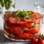 - Serve: Serve the marinated tomatoes chilled. They make a perfect refreshing appetizer or a vibrant side dish to complement grilled meats and other main courses.