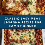 This Easy Meat Lasagna recipe combines layers of tender pasta, savory ground beef and Italian sausage in marinara sauce, creamy ricotta cheese mixture, and melted mozzarella for a classic Italian comfort meal. Perfect for family dinners, this hearty lasagna is baked to perfection with rich flavors and a golden cheese topping.