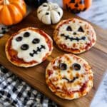 - Serve: Remove the mini pizzas from the oven and let them cool on the baking sheet for 2 to 3 minutes. Serve warm and enjoy your spooky, delicious Halloween treats!