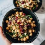 A refreshing Mediterranean-inspired chickpea salad featuring creamy feta, sweet dried cranberries, and a zesty lemon vinaigrette. Perfect as a light lunch or side dish, this no-cook recipe blends vibrant flavors and textures, offering a nutritious and easy-to-make option.