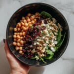 A refreshing Mediterranean-inspired chickpea salad featuring creamy feta, sweet dried cranberries, and a zesty lemon vinaigrette. Perfect as a light lunch or side dish, this no-cook recipe blends vibrant flavors and textures, offering a nutritious and easy-to-make option.