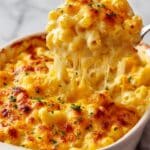 This Five Cheese Baked Mac & Cheese is a decadent, creamy, and cheesy comfort food classic. Combining sharp cheddar, mozzarella, gouda, fontina, and parmesan, this recipe creates a rich and flavorful sauce that is perfectly baked to a golden, bubbly finish with an optional crispy panko breadcrumb topping. Ideal for family dinners or gatherings, it satisfies all cheese lovers’ cravings with a velvety texture and satisfying crust.