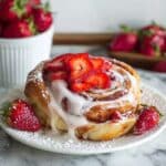 These Fluffy Strawberry Cinnamon Rolls combine soft, tender dough with a sweet and fruity strawberry cinnamon filling, topped with a smooth vanilla glaze. Perfect for a cozy breakfast or dessert, this vegan-friendly recipe uses almond milk, coconut oil, and natural sweeteners for a delightful twist on a classic treat.