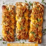 - Add Topping: Remove the braid from the oven and sprinkle the remaining ¼ cup of cheddar cheese and remaining French fried onions on top.