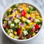 This fresh and vibrant Corn Salad recipe combines sweet corn kernels with crunchy red bell pepper, cucumber, red onion, and fresh cilantro, all tossed in a zesty lime and olive oil dressing. Perfect as a light side dish or a refreshing snack, this salad is quick to prepare and ideal for warm-weather gatherings.
