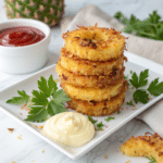 These Fried Pineapple Rings are a deliciously sweet and crispy snack perfect for any occasion. Coated in a light, spiced batter and fried to golden perfection, they make a delightful treat that combines the tropical sweetness of pineapple with a satisfyingly crunchy exterior. Serve them warm, dusted with powdered sugar and drizzled with honey or maple syrup for an extra touch of sweetness.