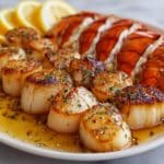 Succulent lobster tails and tender sea scallops are cooked to perfection with a rich and flavorful garlic butter sauce, finished under the broiler and in a hot skillet for a quick and elegant seafood dish perfect for any special occasion or weeknight dinner.
