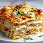 Garlic Butter Shrimp Scampi Lasagna is a delightful fusion of classic Italian flavors and seafood goodness. This creamy, cheesy lasagna features succulent shrimp sautéed in garlic butter and lemon, layered with a rich Parmesan white sauce and creamy ricotta mixture. Baked to golden perfection, it’s a comforting yet elegant dish perfect for seafood lovers and special occasions.