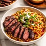 - Assemble and Serve: Plate the garlic noodles and top generously with sliced teriyaki chicken. Garnish with chopped green onions and sesame seeds if desired to add a fresh and nutty finish.