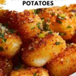 Garlic Parmesan Roasted Potatoes are crispy, golden-brown baby potatoes tossed in a flavorful blend of olive oil, garlic, oregano, and topped with melted Parmesan cheese and fresh parsley. This easy-to-make side dish pairs perfectly with any meal, delivering a savory, cheesy, and herbaceous taste in every bite.