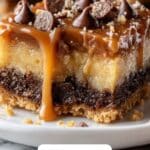 Since this dessert is best served chilled, reheating is not usually recommended. However, if you’d like to warm a slice slightly, remove the whipped topping and warm the base cake and caramel gently in a microwave for 10-15 seconds, then add the chilled toppings back on before enjoying.