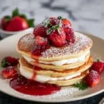 These Gluten Free Strawberry Cheesecake Pancakes combine fluffy gluten-free pancakes with creamy swirls of cheesecake and fresh strawberries for a delicious, ultimate breakfast treat. Perfect for those avoiding gluten, this recipe offers a delightful balance of sweet and tangy flavors with a soft, tender texture.