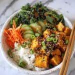 Gochujang Korean Tofu is a vibrant and flavorful vegan dish that highlights the bold and spicy taste of Korean gochujang sauce combined with the satisfying texture of crispy pan-fried tofu. This quick and easy recipe is perfect for a healthy lunch or dinner, garnished with toasted sesame seeds and fresh green onions for extra flavor and crunch.