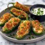 Golden Jalapeno Poppers are a deliciously spicy and creamy appetizer featuring fresh jalapenos stuffed with a rich blend of cream cheese, cheddar, garlic powder, and chives. Coated with a crispy panko and butter mixture seasoned with smoked paprika, these poppers bake to golden perfection for a crunchy, flavorful bite that’s perfect for parties or snack time.
