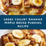 This Greek Yogurt Banana Maple Bread Pudding is a comforting and wholesome dessert or breakfast option. Made with whole grain bread, ripe bananas, creamy Greek yogurt, and natural sweetness from maple syrup, it offers a satisfying blend of flavors and textures. The dish bakes to golden perfection, with a soft, custardy interior and optionally topped with crunchy nuts for added texture. It’s an easy, nutritious recipe perfect for cozy mornings or a healthy dessert.